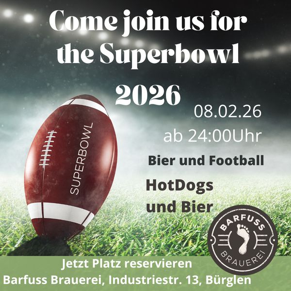 Erlebe den Super Bowl in einzigartiger Atmosphäre bei uns in der Brauerei! Wir übertragen das Spiel live aus den USA und sorgen für echtes American-Feeling bis in die frühen Morgenstunden.